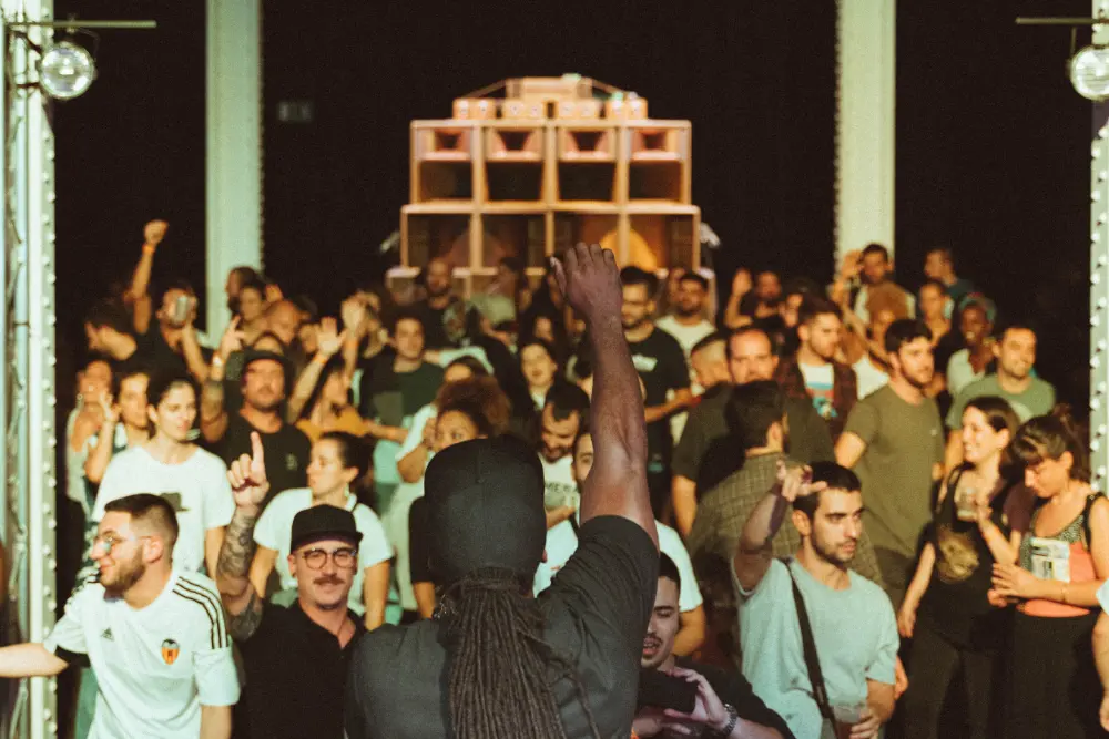 Rebelmadiaq i el seu sound system artesanal ofereixen una experiència musical única que recupera l’esperit comunitari de la música negra i del Carib, a través d’esdeveniments on es trenca la clàssica dinàmica escenari-públic, compartint les freqüències que emanen dels seus altaveus de fusta autoconstruïts.
